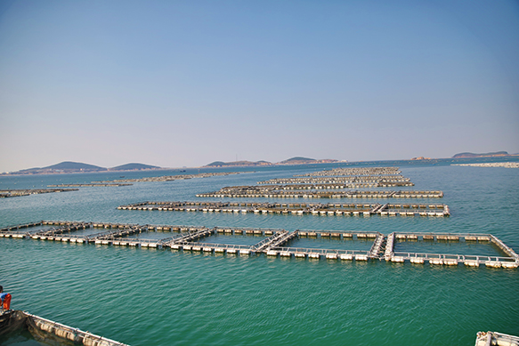天正集團(tuán)兩大海洋牧場(chǎng),位于大連市金州新區(qū)和長(zhǎng)??h廣鹿島,均屬黃海海域深水區(qū),采用的深??癸L(fēng)浪網(wǎng)箱,是在最初引進(jìn)日本網(wǎng)箱的基礎(chǔ)上,再設(shè)計(jì)得到了符合我國(guó)北方海域條件的深水抗風(fēng)浪金屬網(wǎng)箱,天正集團(tuán)擁有該網(wǎng)箱的完全自主知識(shí)產(chǎn)權(quán),集節(jié)能、環(huán)保、美觀和規(guī)范化養(yǎng)殖于一體,是目前中國(guó)先進(jìn)的海上養(yǎng)殖網(wǎng)箱設(shè)施之一。