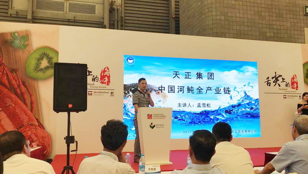 2017年7月1日,“中國河鲀產業(yè)巔峰對話”在中國(福州)國際漁業(yè)博覽會期間同期舉行。中國漁業(yè)協會河豚魚分會常務副會長、大連天正集團董事長孟雪松出席了大會,并做了題為《中國河鲀產業(yè)發(fā)展前世今生——市場狀況(紅鰭東方鲀)》的重要主題演講。