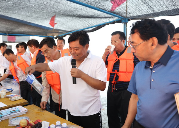 2017年9月7日,遼寧省海洋與漁業(yè)廳廳長湯方棟及全省海洋系統(tǒng)主要領導一行50余人蒞臨天正集團廣鹿島養(yǎng)殖基地,考察海上網箱河鲀養(yǎng)殖工作。